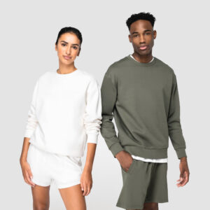 Adoptez un look tendance tout en respectant l’environnement avec le sweat-shirt écoresponsable à col rond à épaules tombantes molleton gratté