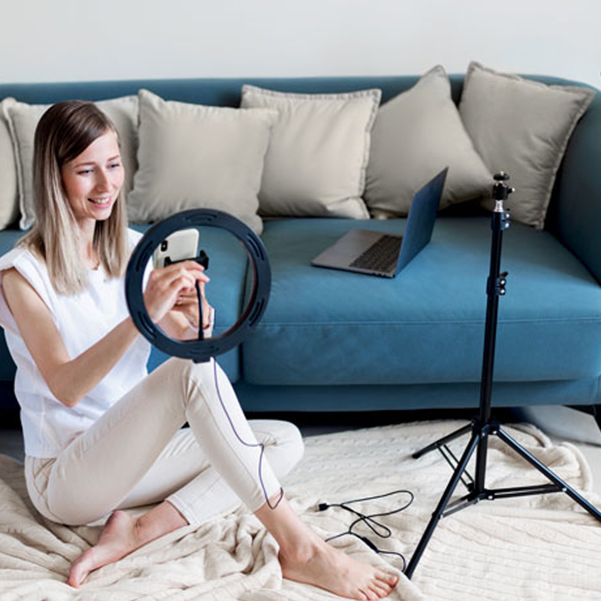 Lampe Ring LED 26 cm avec trépied et support téléphone
