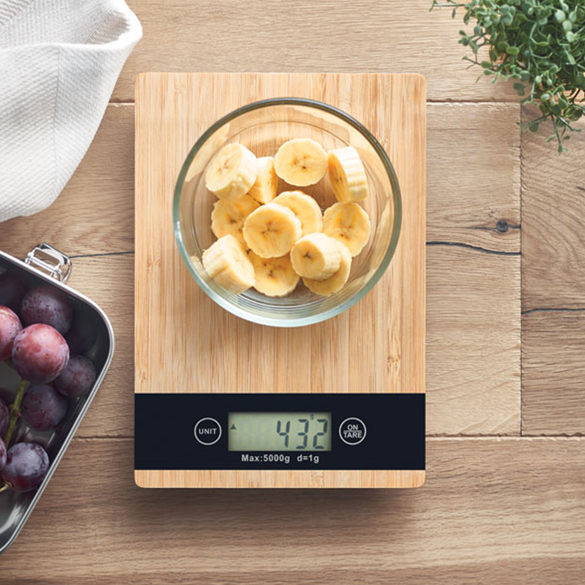 Balance de cuisine numérique en bambou