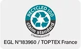 Selon les produits et les matières, certaines références peuvent notamment être conformes à des certifications reconnues liées aux matériaux recyclés, aux textiles responsables ou aux procédés de fabrication à impact environnemental réduit.